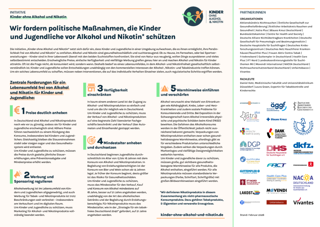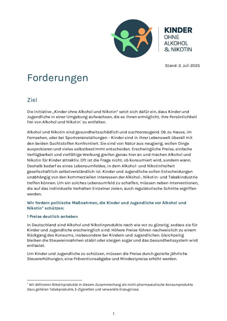 Forderungen der Initiative Kinder ohne Alkohol und Nikotin